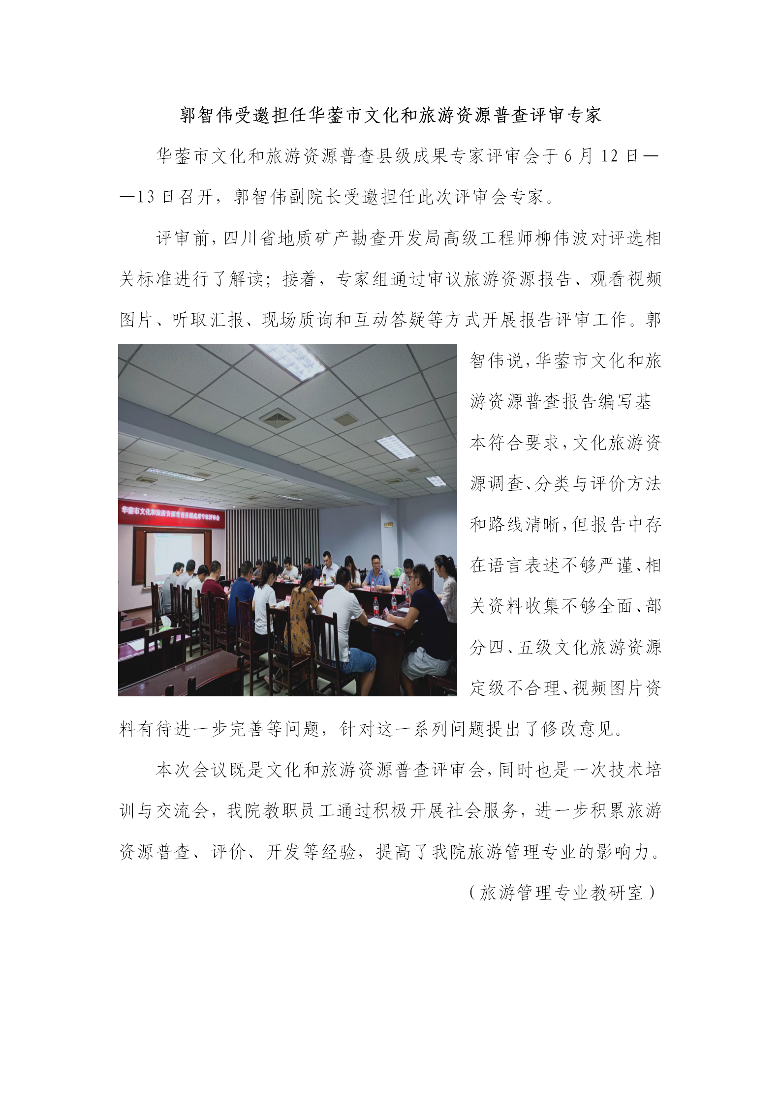 - 2020-10-26郭智伟受邀担任华蓥市文化和旅游资源普查评审专家