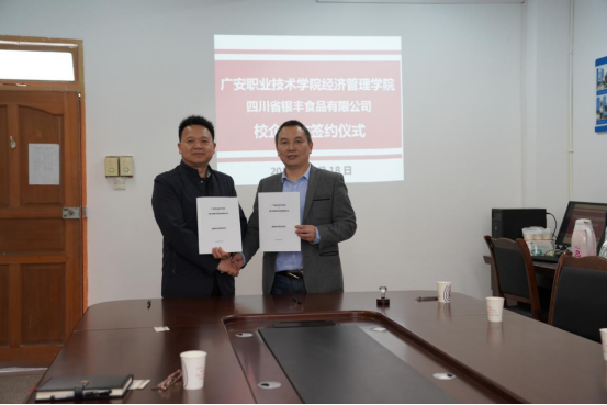 11月18日上午,pp电子游戏平台网站经济管理学院与四川省银丰食品有限公司-岳池米粉电商订单班项目合作签约仪式在明德楼213会议室举行。这是经管学院电子商务专业首个与地方企业共建电商订单班的模式。经管学院院长文卫、副院长谭燕、教学科科长邓小辉、电商物流教研室主任徐娟、营销教研室主任沈婷婷,银丰食品有限公司负责人许辉等出席本次仪式。