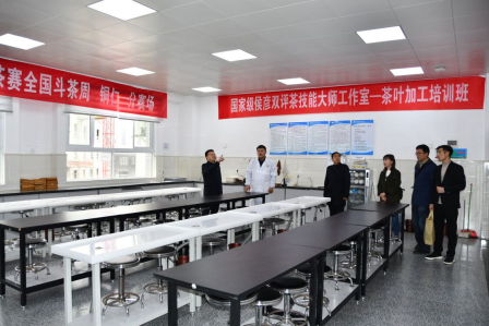 考察组还参观了国家级侯彦双评茶技能大师工作室、国家地方联合工程中心、国家民委人文社科重点研究基地和畜牧兽医生产实训室。