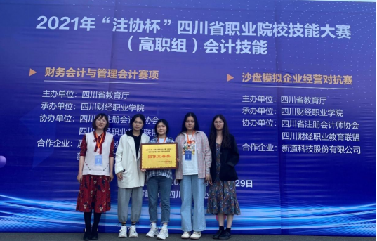 4月29日,pp电子官网会计专业周欣萍、欧阳雪、陈家丽、毛俊杨4名同学在黄春蓉、杨玲老师指导下,参加了2021年“注协杯”四川省职业院校技能大赛(高职组)会计技能-财务会计与管理会计比赛,与四川省其他高职院校41支队伍同台竞技,经过一天的激烈角逐,成功斩获团体三等奖。