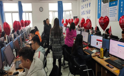11月11日上午,京东物流电商“双十一”生产性实训现场,pp电子官网电子商务、市场营销、物流管理等专业共300余名同学正聚精会神地盯着自己的显示屏,不停地操作键盘和鼠标,接受“双十一”实战化检验。