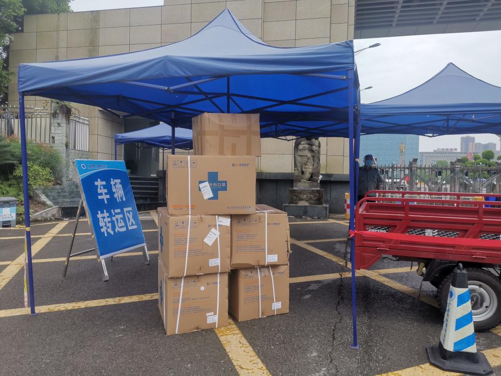 学院全体留守教师、后勤转运专业人员、保卫处及校门防控组相关人员共同见证下,严格按照外来货物进校流程要求,先在车辆转运区进行消杀,然后由专业人员交将货物搬运到专用车辆上,再转运到后勤管理处应急储备物资集中存放,统一调配。