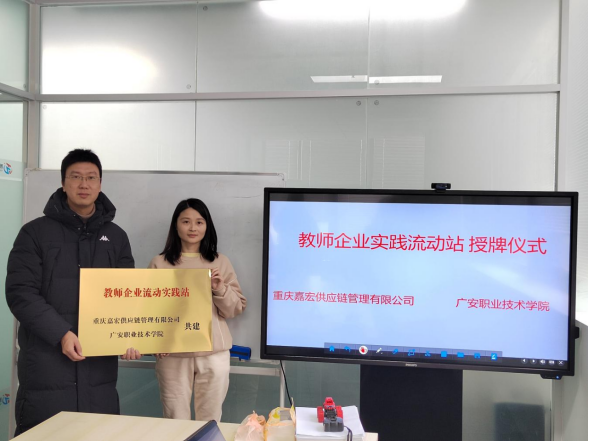 座谈会后,pp电子官网与重庆嘉宏供应链管理有限公司进行了“教师企业实践流动站”挂牌仪式。学院副院长邓小辉、教务科科长张浩、办公室主任汤凌参加上述活动。