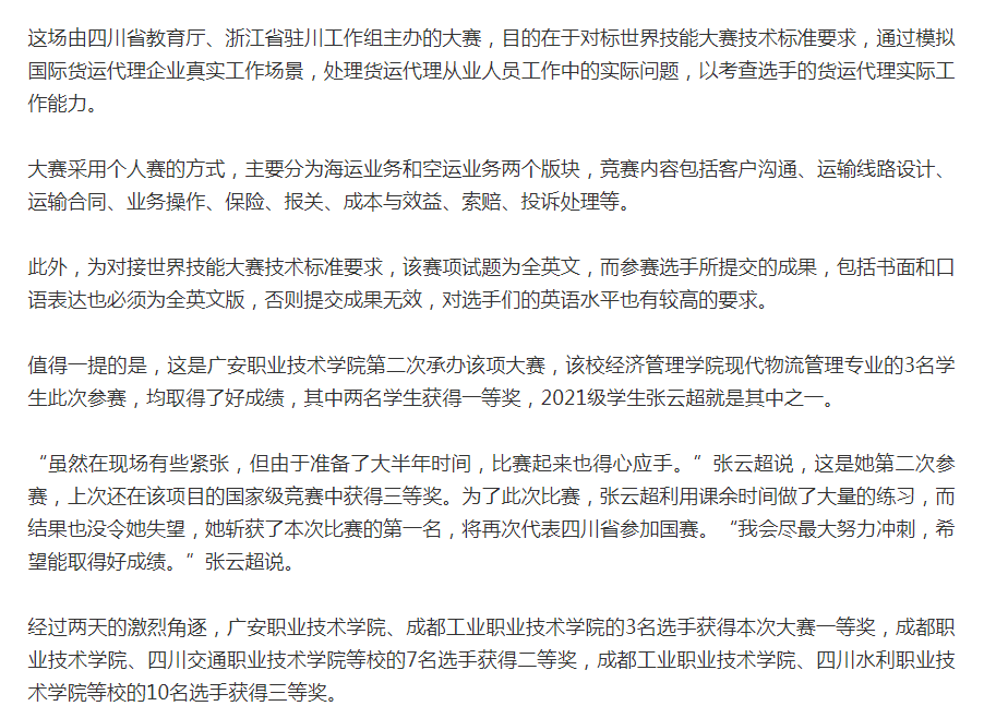 川观新闻:模拟国际货运代理真实工作场景 全省17所高职院校在广安“同台竞技”