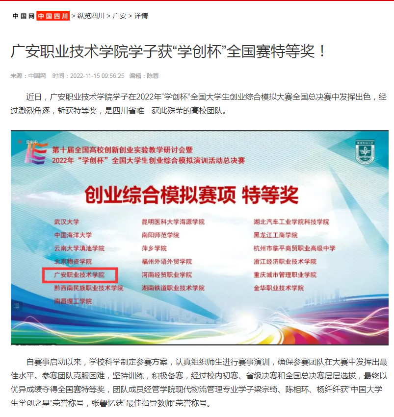 中国网:pp电子游戏平台网站学子获“学创杯”全国赛特等奖!
