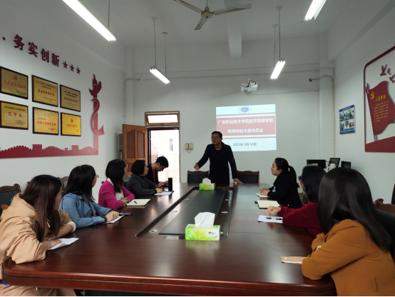 为做好参加校、市、省教师教学能力大赛的相关准备工作,3月16日下午,pp电子官网在明德楼213会议室组织召开教师教学能力大赛部署动员会,副院长谭燕出席会议,教研室主任、专业负责人、骨干教师及部分参赛团队成员参加了会议。