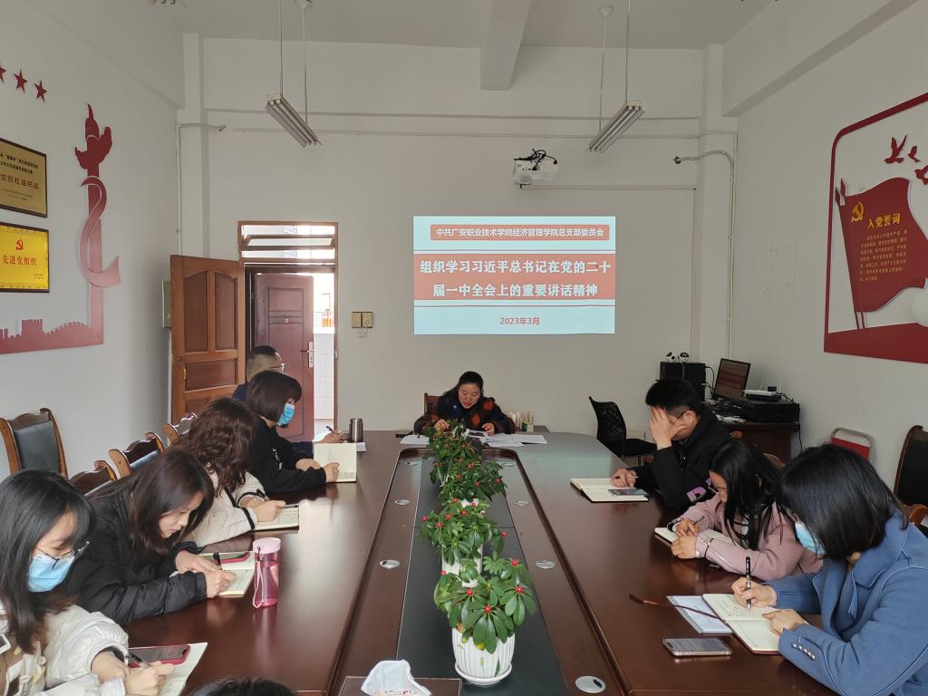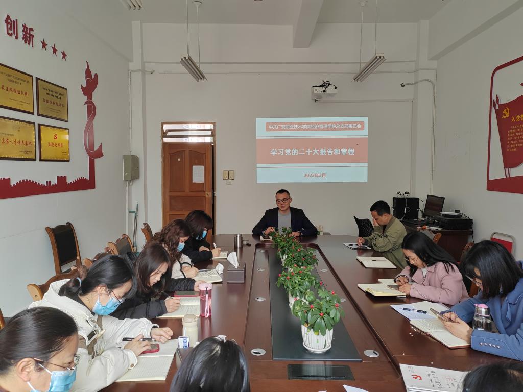 为深入贯彻党的二十大和全国两会精神,坚持不懈用习近平新时代中国特色社会主义思想凝心铸魂,增强党组织政治功能和组织功能,2023年3月17日上午,经济管理学院党总支在明德楼213专题学习党的政治理论知识。会议由经济管理学院党总支书记谭燕主持。