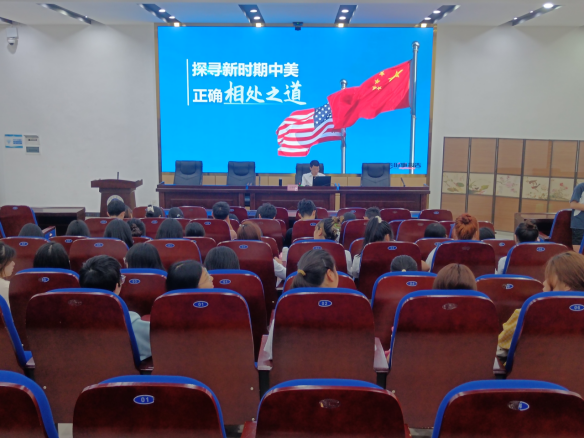 为拓宽师生国际视野,提升他们对国际关系的理解,5月7日下午,学校党委委员、纪委书记王宇平以《探寻新时期中美正确相处之道》为主题,在先圣厅为经济与旅游管理学院师生讲授了一堂生动精彩的形势与政策课。