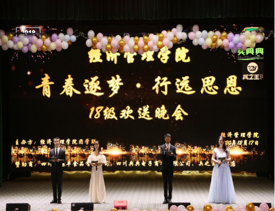 12月17日晚,广安职院经济管理学院“青春逐梦 行远思恩”2018级毕业生欢送晚会在杏坛如约举行。学校党委委员、纪委书记王甫茂出席活动,学校人事处处长冉嘉洛、教务处处长杨毅、招生就业处处长赵勇、继续教育学院院长王秋林、学工部副部长赵俊涵以及经管学院全体领导、老师、团学联干部等参加本次活动。