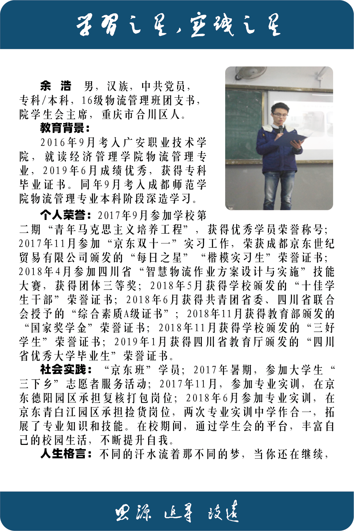 2016级优秀毕业生——余浩
